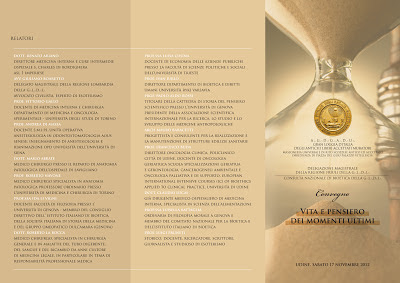 Il tema dell'incontro e' particolarmente intrigante: “Vita e pensiero dei momenti ultimi”.